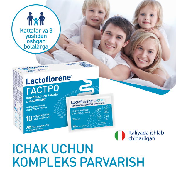 Lactoflorene® GASTRO esa SRK simptomlarini kamaytirishga, ich ketishi yoki qabziyatni normallashtirishga yordam beradi, immunitetni